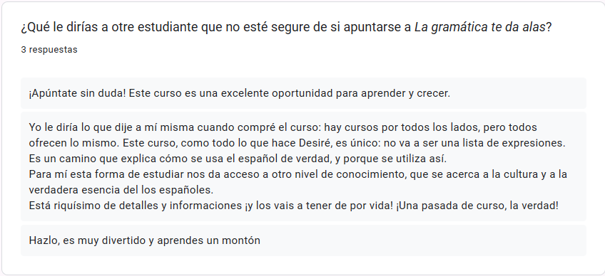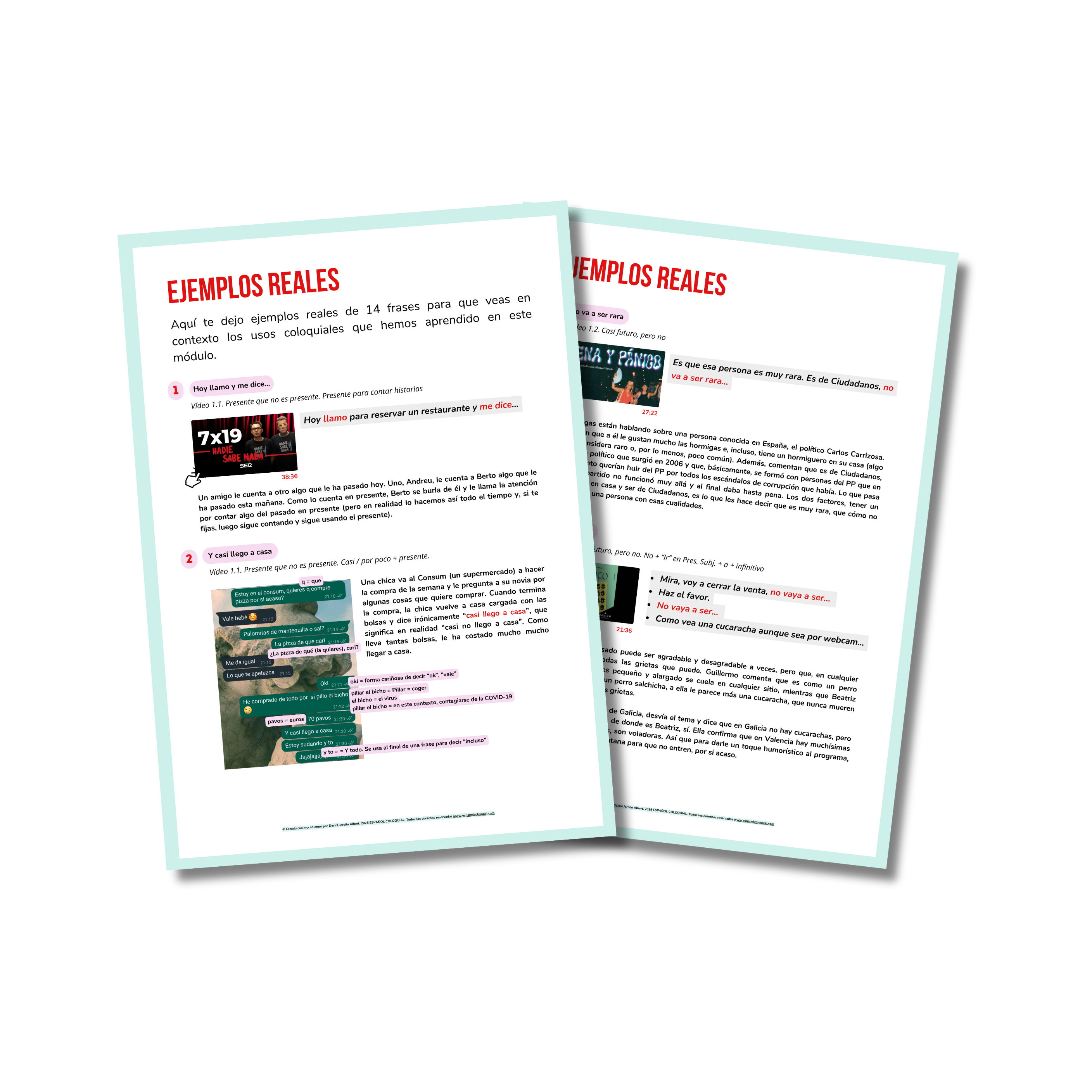 Ejemplos 100% reales extraídos de conversaciones de whatsapp reales, de vídeos de redes sociales, pódcasts, foros, etc. para que veas cómo se utiliza en el mundo real todo lo que aprendemos en el curso.