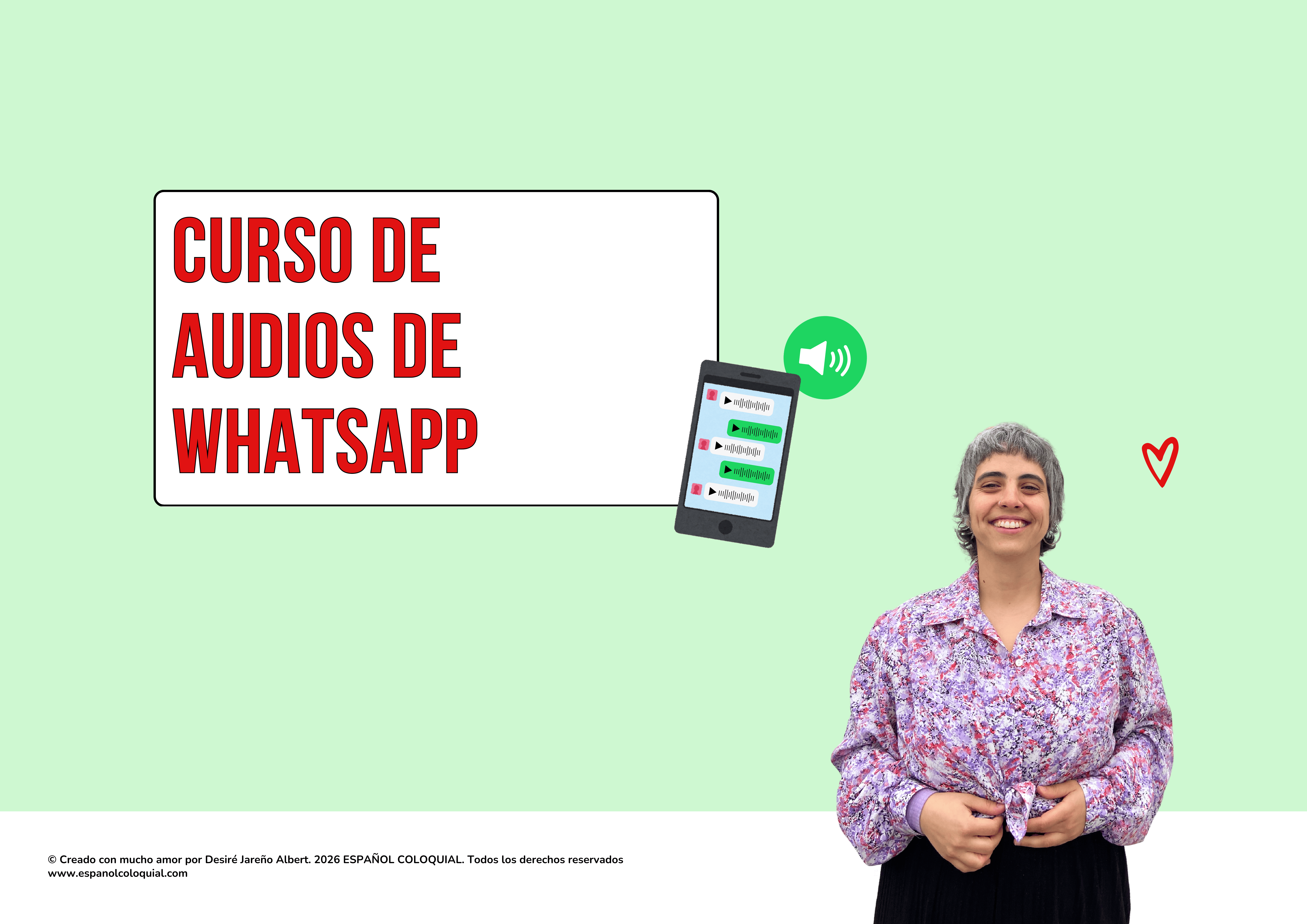 Ocho audios de WhatsApp reales explicados en dos vídeos cada uno: uno donde te explico la gramática y el vocabulario coloquial; y otro donde te explico cositas de pronunciación y entonación coloquial.